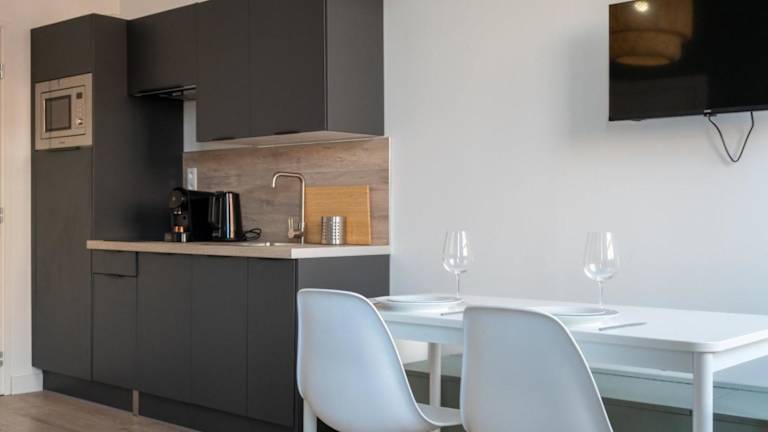 Das Apartment verfügt über ein Schlafzimmer, eine voll ausgestattete Küche mit Kühlschrank und Geschirrspüler, sowie ein Badezimmer, das mit einer Dusche, einem Haartrockner und einer Waschmaschine ausgestattet ist. Handtücher und Bettwäsche werden bereitgestellt.