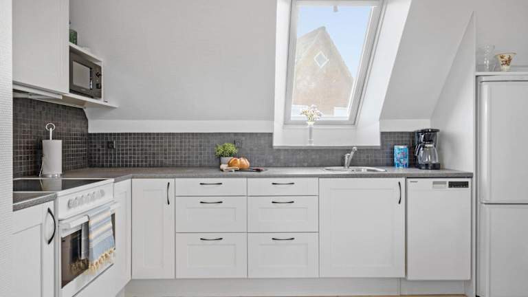 Die Unterkunft umfasst eine voll ausgestattete Küche mit einem Kühlschrank und einer Kaffeemaschine, die für die Selbstverpflegung genutzt werden kann.