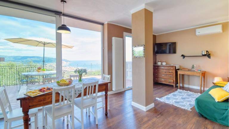 Die Unterkunft befindet sich 2 km vom Strand Diano Marina entfernt und bietet einen Blick auf das Meer. In der Nähe liegen interessante Punkte wie Bresca Square und San Siro Co-Cathedral, die beide 37 km entfernt sind. Weitere Sehenswürdigkeiten sind Forte di Santa Tecla und Villa Nobel, die 37 km bzw. 35 km entfernt liegen.