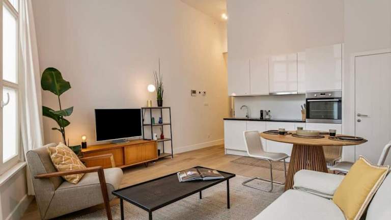 Die Ferienwohnung 1-BR Centre Antwerp Haven with Patio bietet eine Terrasse und kostenloses WLAN. Sie verfügt zudem über eine Waschmaschine und einen Balkon.