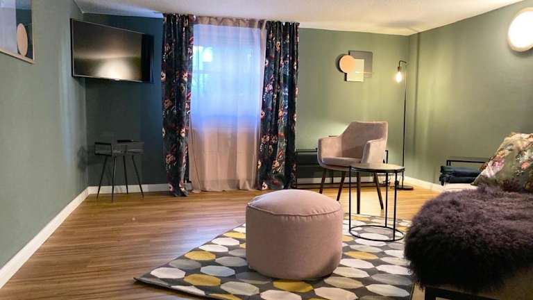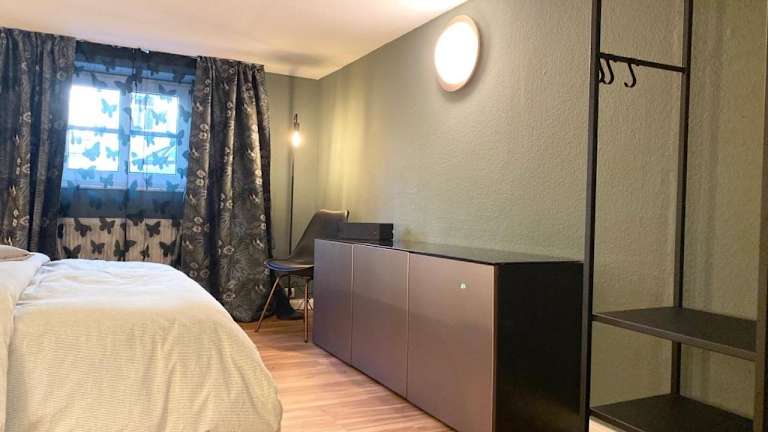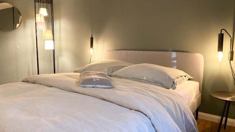 Die Ferienwohnung verfügt über ein Schlafzimmer und ist mit einem TV mit Kabelkanälen ausgestattet. Eine gut ausgestattete Küchenzeile mit Kühlschrank und Geschirrspüler ist vorhanden. Des Weiteren gibt es ein Badezimmer mit Dusche. Handtücher und Bettwäsche werden bereitgestellt.