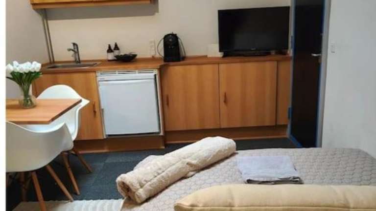 Die Unterkunft umfasst ein separates Schlafzimmer, eine voll ausgestattete Küchenzeile und ein Badezimmer.