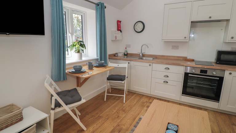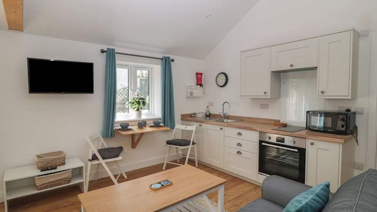 Das Ferienhaus verfügt über ein Schlafzimmer, ein Wohnzimmer mit TV sowie eine gut ausgestattete Küche, die mit einem Kühlschrank und einem Ofen ausgestattet ist. Des Weiteren gibt es ein Badezimmer mit Dusche.