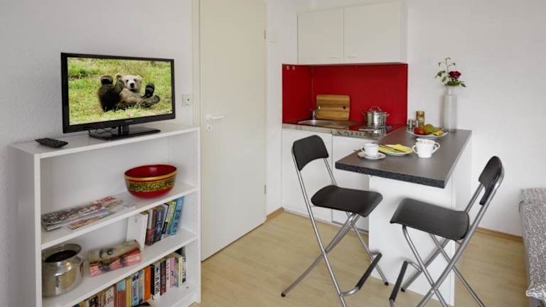 Das 1-Zimmer-Apartment Heßdorf befindet sich im Erdgeschoss und verfügt über ein Schlafzimmer, eine gut ausgestattete Küchenzeile mit Kühlschrank und Kochfeld sowie ein gemütliches Wohnzimmer. Ein Flachbild-TV sorgt für Unterhaltung. Handtücher und Bettwäsche werden gestellt, um den Aufenthalt so angenehm wie möglich zu gestalten.