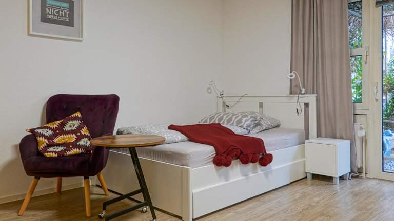 Die Unterkunft 1 Zimmer Wohnung mit der Terrasse in der Innenstadt bietet eine Terrasse und Zugang zu kostenlosem WLAN. Die Lage im Stadtzentrum ermöglicht eine einfache Erreichbarkeit der AUsflugsziele der Umgebung.