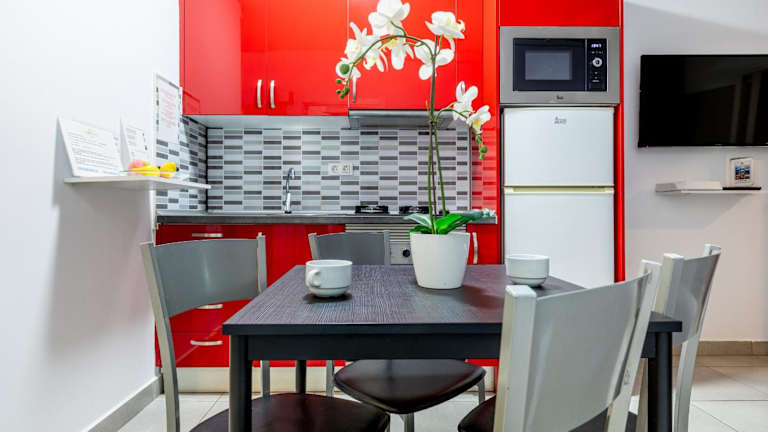 Es gibt einen Snackbereich und eine Snackbar in der Unterkunft. Die Ferienwohnung ist zudem mit einer gut ausgestatteten Küche ausgestattet, die für Selbstversorgung genutzt werden kann.