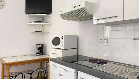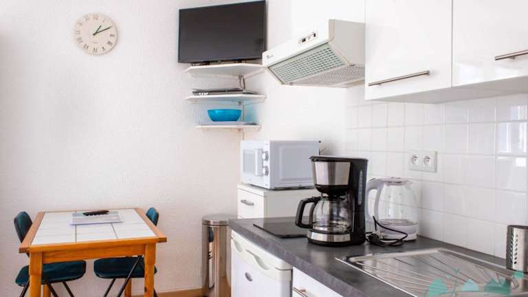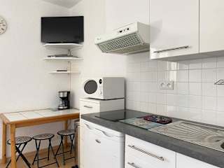 Die Unterkunft verfügt über eine voll ausgestattete Küchenzeile mit Kühlschrank und Mikrowelle, um eigene Mahlzeiten zuzubereiten. Handtücher und Bettwäsche sind nicht im Reservierungspreis enthalten; Gäste müssen diese selbst mitbringen oder vor Ort anmieten. Eine Reinigungsgebühr kann ebenfalls anfallen oder die Gäste können die Unterkunft selbst reinigen.