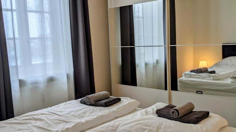 Die Ferienwohnung verfügt über 2 Schlafzimmer, ein Wohnzimmer und eine voll ausgestattete Küche. Die Küche ist mit einem Geschirrspüler und einer Kaffeemaschine ausgestattet. Zudem gibt es ein Badezimmer mit Dusche und kostenlosen Pflegeprodukten. Handtücher und Bettwäsche sind ebenfalls vorhanden.