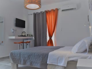 Unsere Studios sind sehr nah am Strand. Sie haben einen schönen Blick auf das Meer. Die sind sehr komfortabel und für zwei Personen geeignet. Verfügt über ein großes Doppelbett, ein eigenes Badezimmer, einen Kleiderschrank, einen Wasserkocher zum Zubereiten von Kaffee oder Tee und zwei Hochstühle zum Sitzen und Genießen.