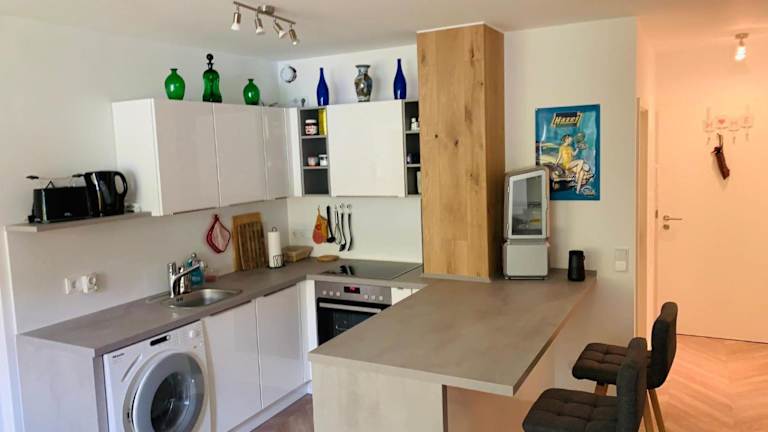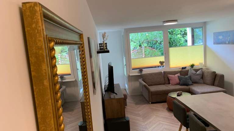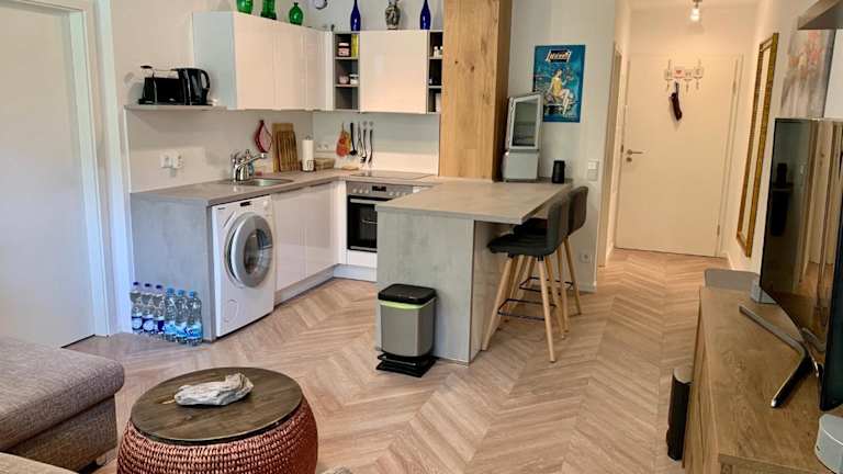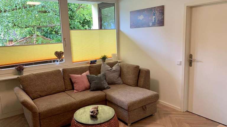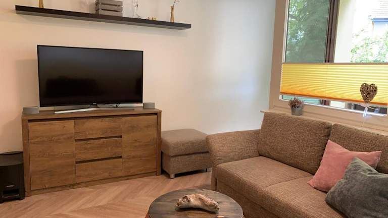 Die Ferienwohnung besteht aus einem Schlafzimmer, einem Wohnzimmer, einer voll ausgestatteten Küche mit Kühlschrank und Kaffeemaschine sowie einem Badezimmer mit Dusche und Haartrockner. Handtücher und Bettwäsche sind ebenfalls vorhanden.