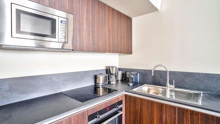 Die Ferienwohnung verfügt über eine voll ausgestattete Küche mit einem Kühlschrank und einer Kaffeemaschine, die die Zubereitung eigener Mahlzeiten ermöglicht.