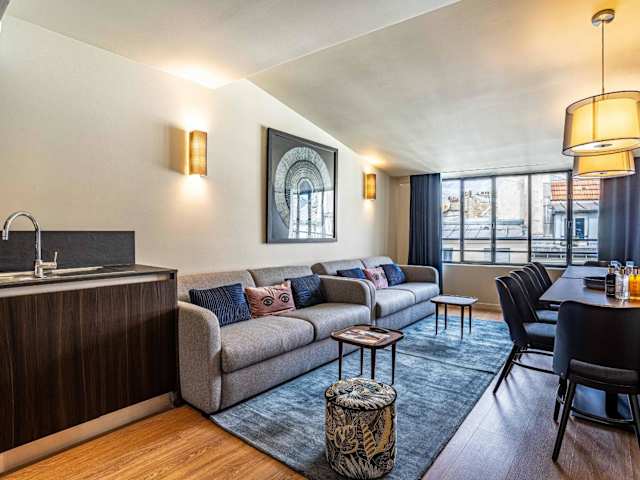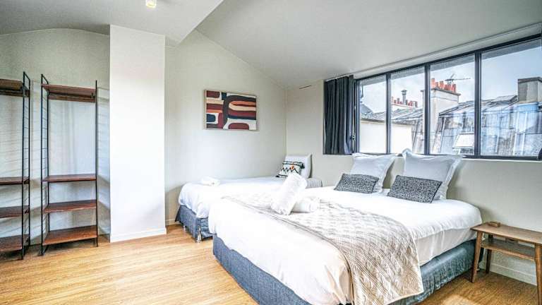 Das 135 - Urban Five Star Apartment bietet Übernachtungsmöglichkeiten in einer zentral gelegenen Ferienwohnung in Paris. Das Apartment verfügt über 5 Schlafzimmer, ein Wohnzimmer und eine voll ausgestattete Küche mit modernen Annehmlichkeiten.