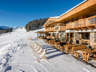 1350 – Die Alm über Saalbach ist eine neu renovierte Hütte mitten im Skicircus Saalbach Hinterglemm, welche höchsten Komfort und feinste Hüttenkulinarik bietet. Das Bergrestaurant ist sowohl für externe als auch für Hausgäste im Winter geöffnet und der perfekte Einkehrschwung für Skifahrer. Im Sommer ist das Bergrestaurant geschlossen. Erholungssuchende können jedoch im Sommer wie Winter in den zwei hochwertig ausgestatteten, großräumigen Appartements mit Panoramasauna und eigenem Ski-/Bikekeller der Alm nächtigen. Diese bieten Platz für bis zu 5 oder bis zu 7 Personen und sind im Winter mit der Gondel und im Sommer auch mit dem Auto erreichbar.