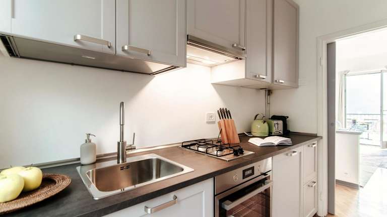 Die Zimmer der Unterkunft sind mit einem Balkon und Stadtblick ausgestattet und verfügen über einen Sitzbereich, einen Flachbild-TV sowie eine voll ausgestattete Küche, die einen Kühlschrank und einen Ofen umfasst. Das eigene Badezimmer ist mit einem Bidet, kostenlosen Pflegeprodukten und einer Badewanne ausgestattet. Ein Haartrockner ist ebenfalls vorhanden.