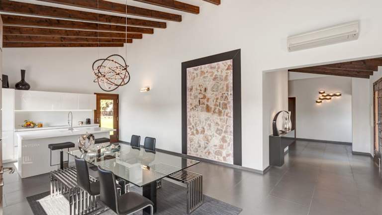 Die 156 Villa Son Calet ETV5579 by Mallorca Charme bietet klimatisierte Unterkünfte mit einem eigenen Pool und kostenlosem WLAN. Die Villa verfügt über 3 Schlafzimmer, 2 Badezimmer, einen Essbereich sowie eine voll ausgestattete Küche. Zudem gibt es eine Terrasse mit Blick auf die Berge.