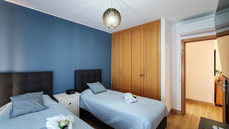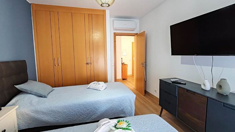 Die Ferienwohnung besteht aus 2 Schlafzimmern, einem Wohnzimmer und einer voll ausgestatteten Küchenzeile. Die Küchenausstattung umfasst einen Kühlschrank und eine Kaffeemaschine. Das Badezimmer ist mit einer Badewanne und einem Haartrockner ausgestattet. Handtücher und Bettwäsche werden bereitgestellt und die Unterkunft ist klimatisiert.