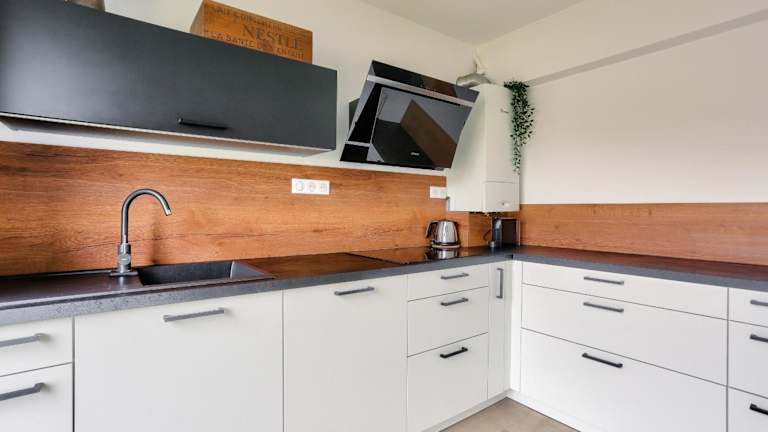 Das Ferienhaus verfügt über drei Schlafzimmer, eine Küche, die mit einem Kühlschrank und einem Geschirrspüler ausgestattet ist. Zudem sind ein Badezimmer mit Dusche, Haartrockner und Waschmaschine vorhanden. Ein TV gehört ebenfalls zur Ausstattung.
