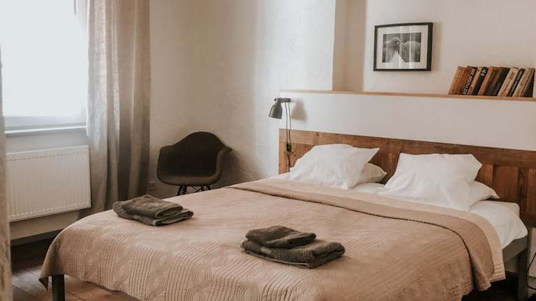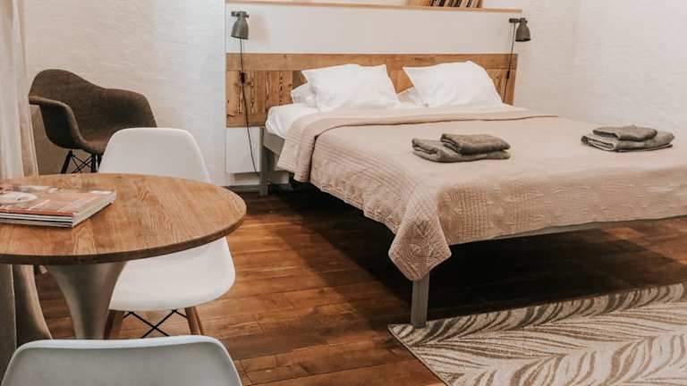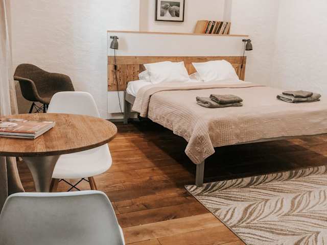 Das Hotel 2 Baloži in Kuldīga ist ein kleines und gemütliches Hotel im Herzen der historischen Altstadt. Hier erwartet Sie eine angenehme Atmosphäre und moderne Zimmer mit allen Annehmlichkeiten. Genießen Sie die Nähe zu den Sehenswürdigkeiten dieser wunderschönen historischen Stadt.