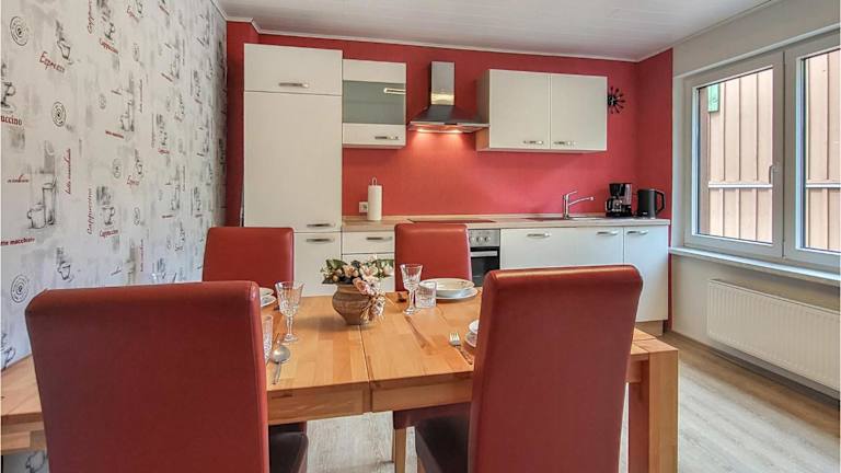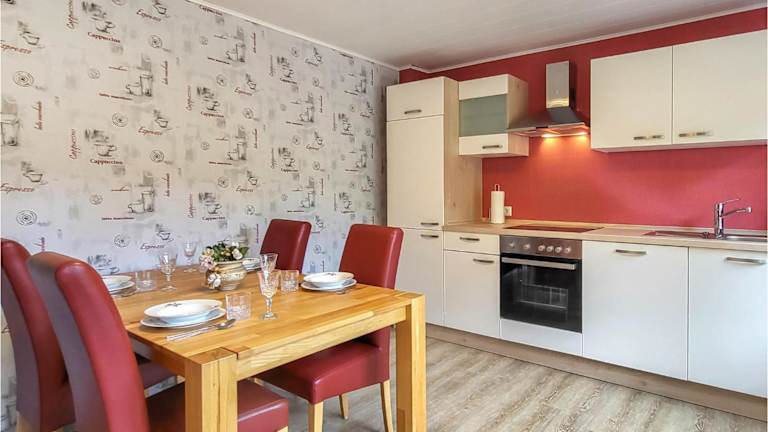 Die Unterkunft beinhaltet eine gut ausgestattete Küche, die mit einem Kühlschrank und einem Geschirrspüler ausgestattet ist.