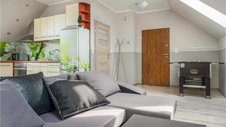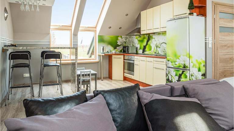 Die Unterkunft befindet sich in Płoskinia, 39 km entfernt vom Oberländischen Kanal. Der nächste größere Ort, Elbląg Bahnhof, ist 36 km entfernt, während Drużno 45 km entfernt gelegen ist. Die Umgebung bietet natürliche Attraktionen und ist 17 km vom Frombork Planetarium sowie dem Nicolas Copernicus Museum entfernt.