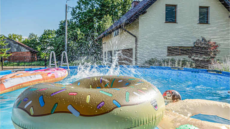 Das Ferienhaus bietet Übernachtungsmöglichkeiten in Form eines klimatisierten 2-Zimmer-Hauses mit praktischen Annehmlichkeiten wie kostenfreiem WLAN und einem Außenpool. Es wird darauf hingewiesen, dass die Durchführung von Junggesellen-/Junggesellinnenabschieden oder ähnlichen Feiern in der Unterkunft nicht gestattet ist.