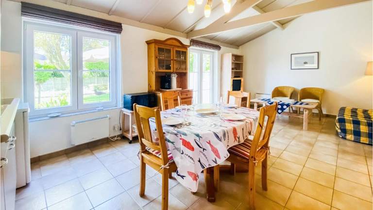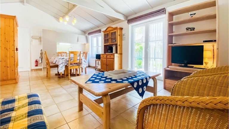 Das Ferienhaus verfügt über 2 Schlafzimmer und bietet Platz für bis zu 4 Personen. Das gemütliche Wohnzimmer ist mit Kabel-TV und einem DVD-Player ausgestattet, sodass Sie sich nach einem langen Tag am Strand entspannen können. Die voll ausgestattete Küche mit Kühlschrank ermöglicht es Ihnen, Ihre eigenen Mahlzeiten zuzubereiten und die Annehmlichkeiten des Hauses voll auszunutzen.