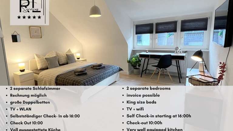 Die Unterkunft verfügt über zwei Schlafzimmer und bietet Platz für die Gäste. Zur Ausstattung gehören ein Flachbild-TV und eine gut ausgestattete Küche mit Kühlschrank und Geschirrspüler. Zudem gibt es ein Badezimmer mit Dusche. Handtücher und Bettwäsche werden bereitgestellt. Es sind Nichtraucherzimmer vorhanden und die Unterkunft bietet WLAN, Heizung sowie Parkmöglichkeiten.