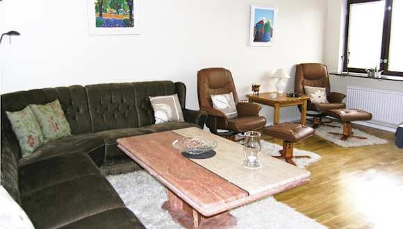 Die Ferienwohnung umfasst zwei Schlafzimmer, ein Wohnzimmer sowie eine voll ausgestattete Küche, die einen Kühlschrank und einen Geschirrspüler beinhaltet. Zu den weiteren Annehmlichkeiten zählen ein TV, ein DVD-Player und ein CD-Player.