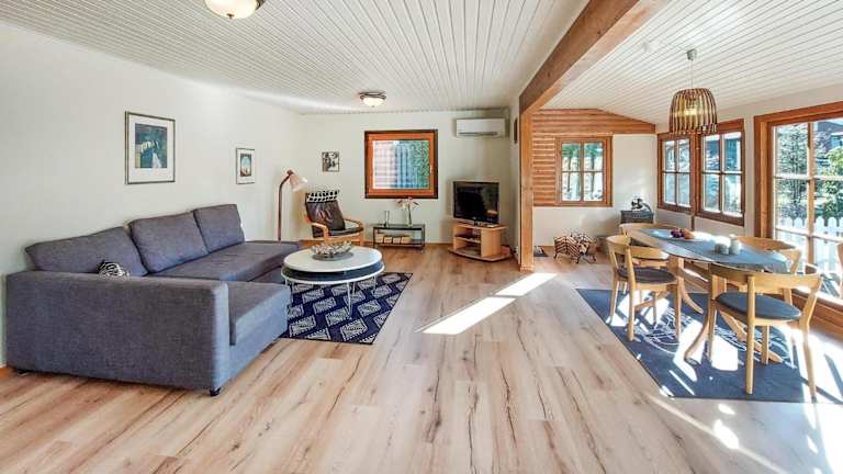 Die Ausstattung der Zimmer umfasst zwei Schlafzimmer sowie ein Wohnzimmer. Die Küche ist voll ausgestattet mit Kühlschrank und Kaffeemaschine. Ein Badezimmer ist vorhanden und das Ferienhaus bietet Klimaanlage.