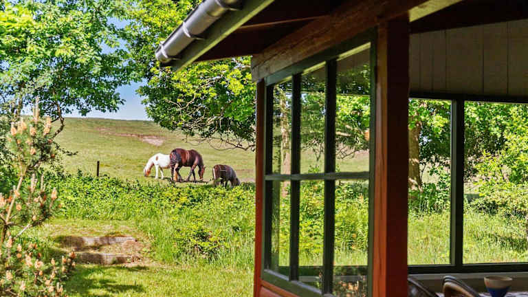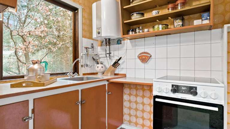 Das Ferienhaus ist mit einer Küche ausgestattet, die einen Kühlschrank und eine Herdplatte umfasst. Es sind keine weiteren Informationen zu Verpflegungsmöglichkeiten vorhanden.