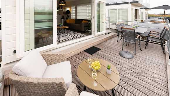 Die Zimmer der Unterkunft sind in einem Boot untergebracht und bieten Kabel-TV sowie eine Küche. Eine Außenterrasse steht auch zur Verfügung, um die Aussicht zu genießen.