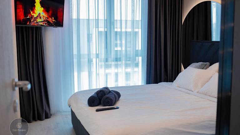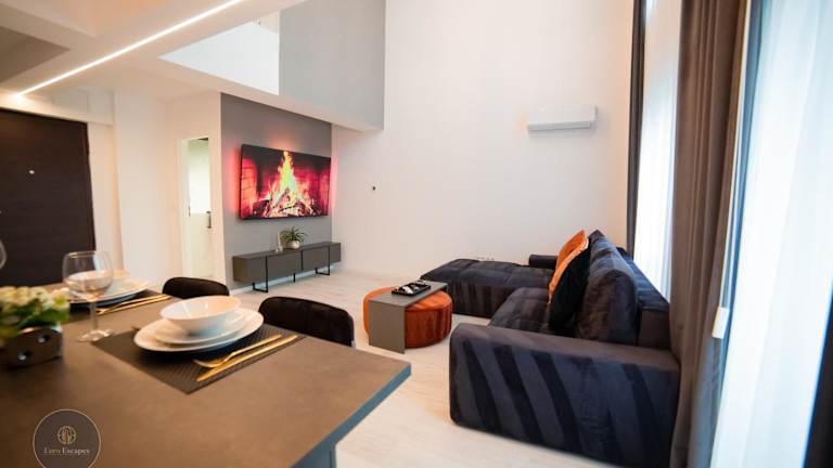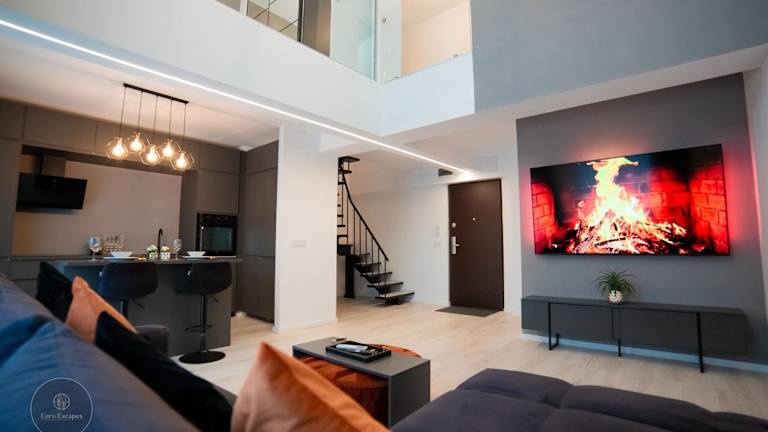 Die Unterkunft CITY SKYLINE EXECUTIVE Duplex besticht durch einen Balkon mit Stadtblick und bietet komfortable Übernachtungsmöglichkeiten. Sie umfasst zwei Etagen und verfügt über eine Terrasse sowie einen kostenlosen Privatparkplatz.