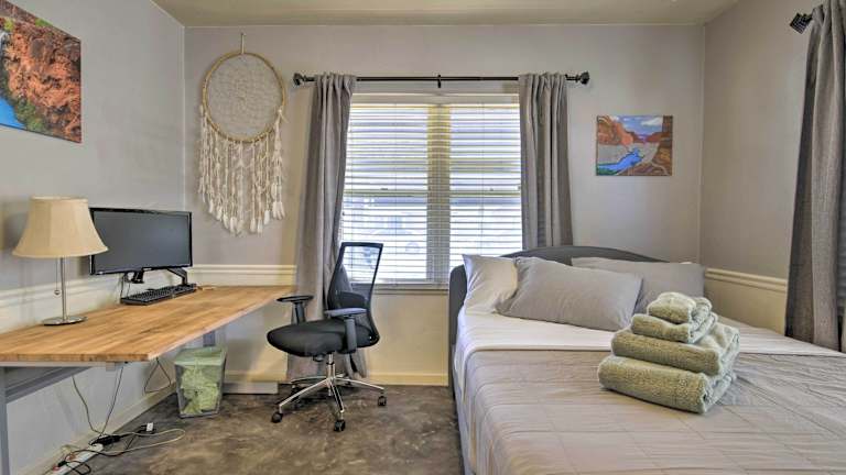 Central Phoenix Cottage with Private Yard! ist eine klimatisierte Ferienunterkunft, die über 2 Schlafzimmer und einen Flachbild-TV verfügt. Zur Ausstattung gehört eine voll ausgestattete Küche. In der Unterkunft sind Handtücher und Bettwäsche vorhanden. Die Unterkunft bietet kostenloses WLAN in allen Bereichen und ist eine Nichtraucherunterkunft.