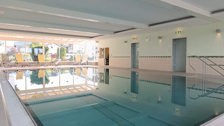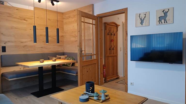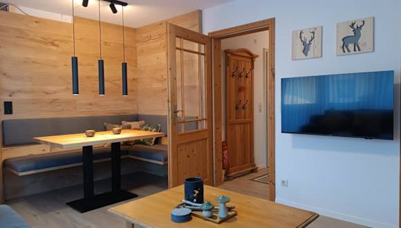 Die 2-Raum FeWo Alpenglück bietet eine komfortable Ferienwohnung mit einem modernen Innenpool und einer Sauna, die gegen zusätzliche Gebühren genutzt werden kann. Die Unterkunft ist ideal für Familien und bietet Annehmlichkeiten wie privaten Parkplatz und kostenfreies WLAN.