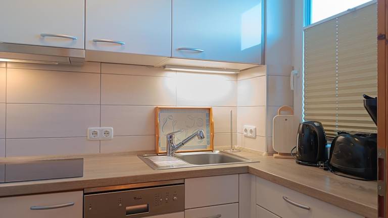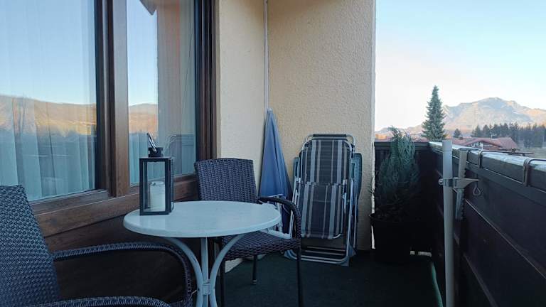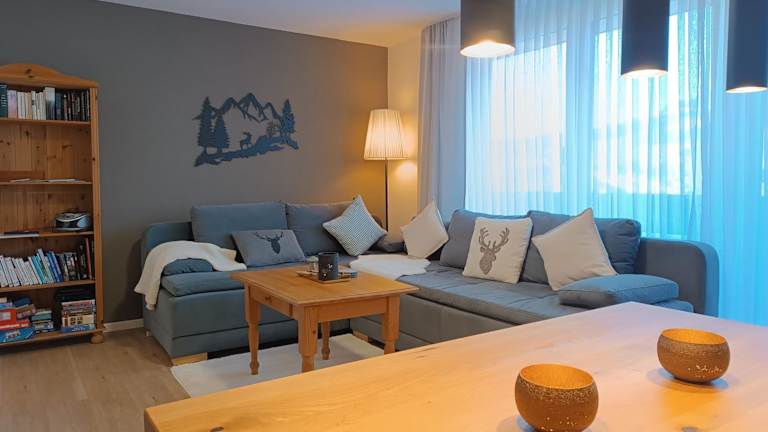 Die Ferienwohnung verfügt über ein Schlafzimmer und ein Wohnzimmer, das mit einem Flachbild-TV ausgestattet ist. Eine gut ausgestattete Küche mit Geschirrspüler und Mikrowelle ist ebenfalls vorhanden. Es gibt zudem ein Badezimmer mit Badewanne und einen Balkon mit Bergblick.