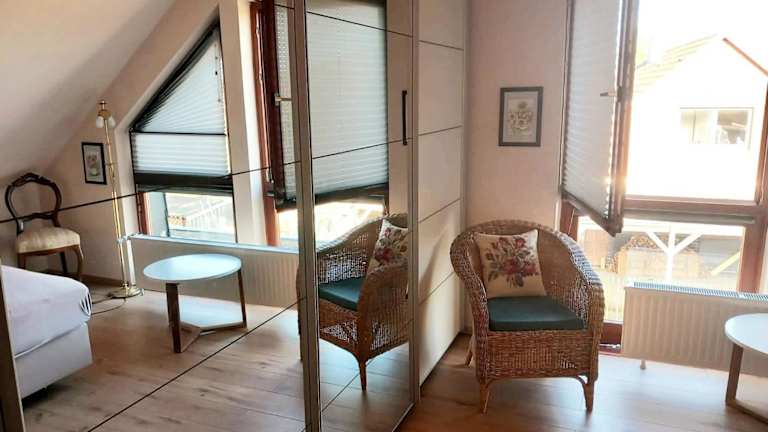 Die Ferienwohnung ist mit einem Schlafzimmer, einer Küchenzeile ausgestattet mit Kühlschrank und Geschirrspüler, einem Flachbild-TV, einem Sitzbereich sowie einem Badezimmer mit Dusche eingerichtet. Handtücher und Bettwäsche werden zur Verfügung gestellt.