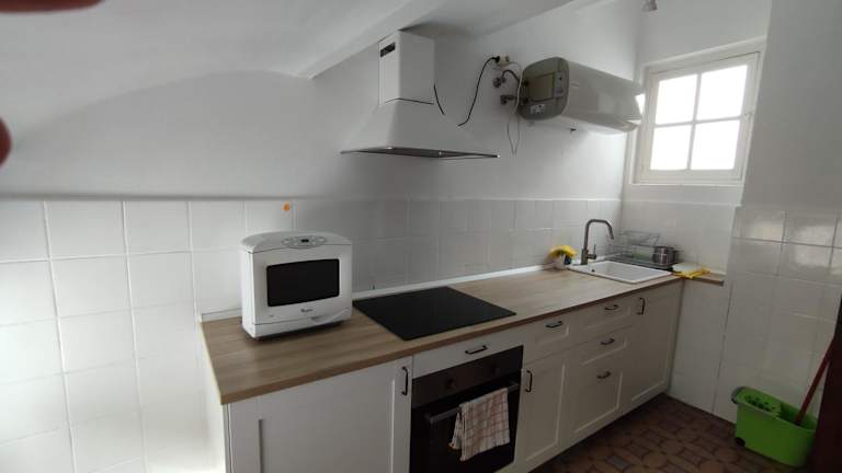 Die Ferienwohnung verfügt über eine voll ausgestattete Küche mit Kühlschrank und Ofen, was Selbstverpflegung ermöglicht.
