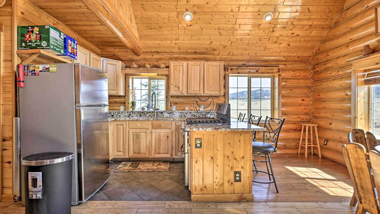 Erleben Sie einen entspannten Aufenthalt in der Remote Fairplay Hütte in Fairplay. Genießen Sie die Gemütlichkeit eines Holzofens und nutzen Sie das kostenfreie WLAN in allen Bereichen der Unterkunft. Das Ferienhaus bietet ein Schlafzimmer, ein Wohnzimmer und eine gut ausgestattete Küche mit einem Balkon. Handtücher und Bettwäsche sind vorhanden. Der Flughafen Colorado Springs ist 129 km entfernt.
