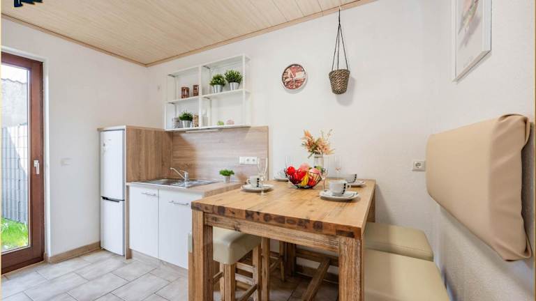 Das Ferienhaus verfügt über 3 Schlafzimmer, einen Flachbild-TV mit Satellitenkanälen sowie eine gut ausgestattete Küche mit Kühlschrank und Geschirrspüler. Es gibt ein Badezimmer mit Dusche. Das Haus bietet auch Gartenmöbel und eine Heizung.