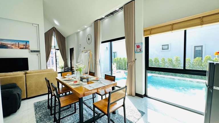 Die 286poolvilla bietet eine komfortable und gut ausgestattete Villa mit einem Schlafzimmer. Die Villa verfügt über eine Klimaanlage, einen Flachbild-Kabel-TV, einen Essbereich, eine Küche mit einem Kühlschrank und ein geräumiges Wohnzimmer. Handtücher und Bettwäsche werden gestellt, um Ihren Aufenthalt so angenehm wie möglich zu gestalten.