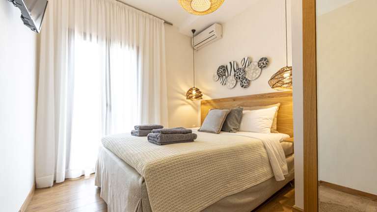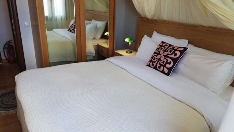 Die Villa umfasst zwei Schlafzimmer und zwei Badezimmer. Zur Ausstattung gehören Bettwäsche, Handtücher, ein TV mit Satellitenkanälen sowie eine voll ausgestattete Küche. Ein Balkon mit Stadtblick und Gartenmöbel sind ebenfalls vorhanden, wodurch die Gäste die Umgebung genießen können.