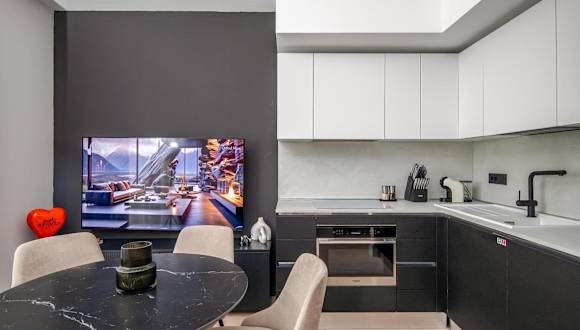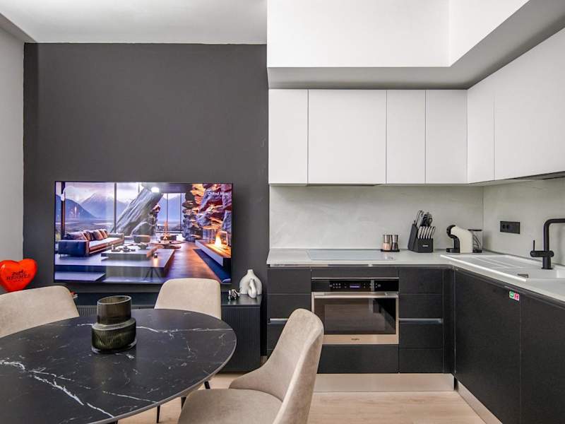 Die Ferienwohnungen sind mit einer voll ausgestatteten Küche inklusive Kühlschrank und Kaffeemaschine ausgestattet, um die Selbstverpflegung zu ermöglichen.