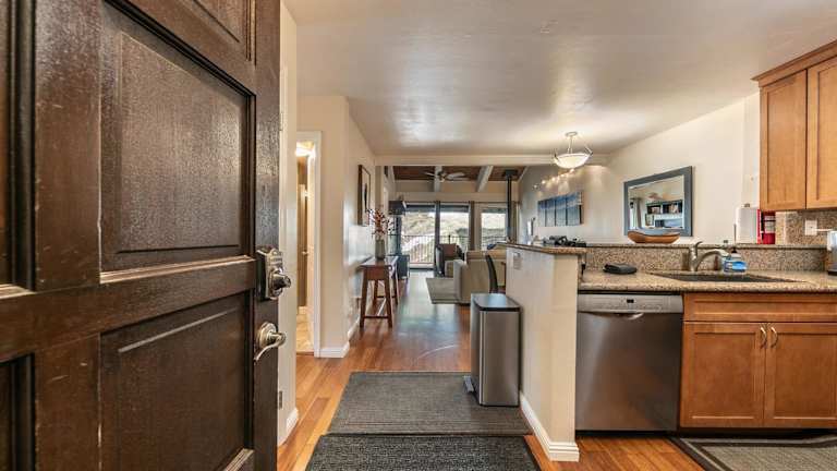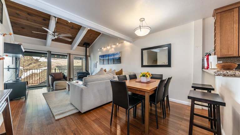 Die Unterkunft 2BR Mins to Alpine Base Area Palisades! bietet ein Ferienhaus mit zwei Schlafzimmern und zwei Badezimmern. Die Ausstattung umfasst Bettwäsche, Handtücher, einen TV sowie eine voll ausgestattete Küche. Außerdem verfügt das Haus über eine Veranda oder einen Patio mit Blick auf die Berge.