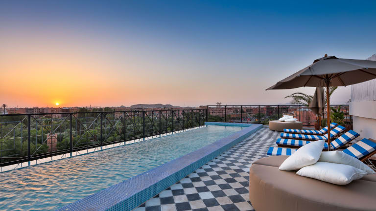 Das 2Ciels Boutique Hôtel in Marrakesch ist eine moderne und stilvolle Unterkunft, die mit ihrem Außenpool, der Sonnenterrasse und den komfortablen Zimmern für einen angenehmen Aufenthalt sorgt. Genießen Sie das kostenfreie WLAN und lassen Sie sich im Restaurant kulinarisch verwöhnen. Die zentrale Lage ermöglicht es Ihnen, die Sehenswürdigkeiten der Stadt bequem zu erreichen.