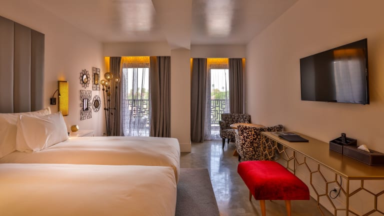 Das 2Ciels Boutique Hôtel befindet sich in Marrakesch und liegt nur 400 m vom Einkaufszentrum Marrakech Plaza entfernt. Die Lage ist ideal, um die Stadt zu erkunden und die Vielfalt der Kultur und des Lebensstils zu erleben. Der Conference Palace und das Einkaufszentrum Carré Eden befinden sich ebenfalls in der Nähe. Der Flughafen Marrakesch-Menara ist nur 4 km entfernt, so dass eine bequeme Anreise gewährleistet ist.