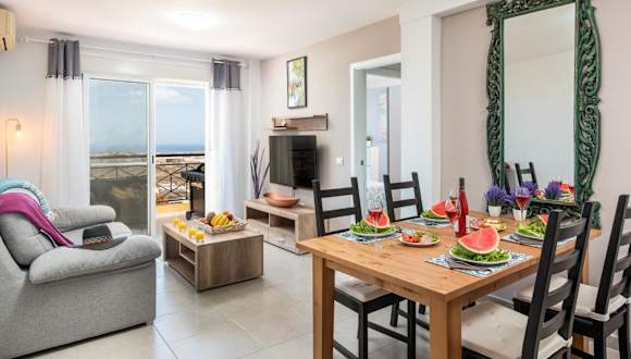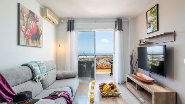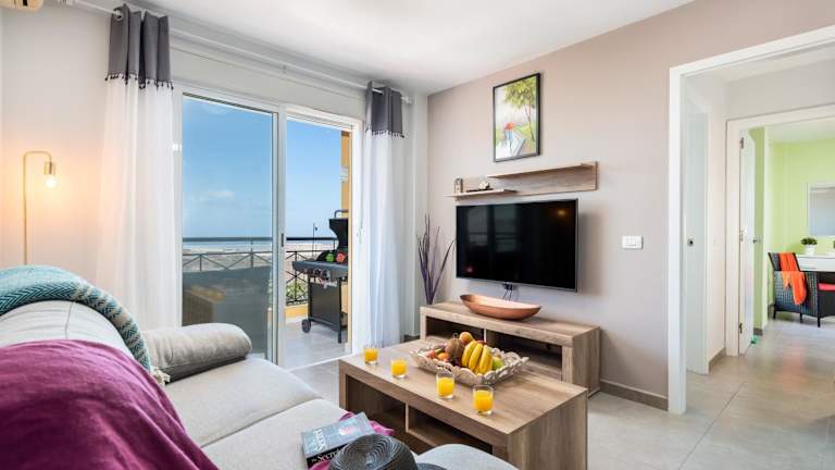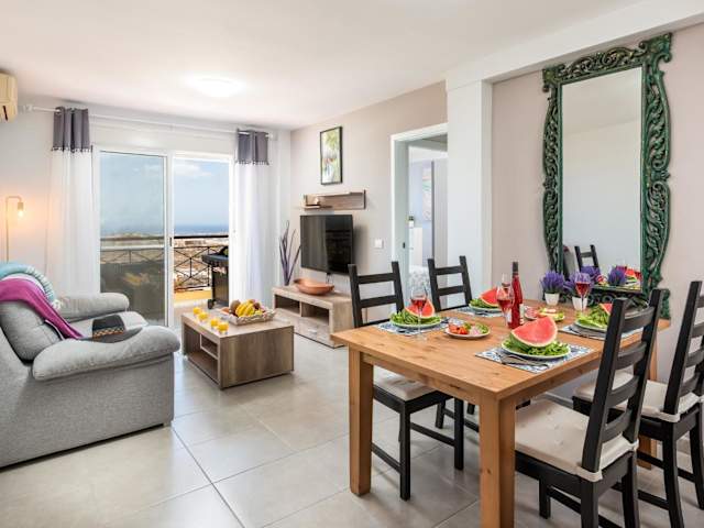 Die Ferienwohnung 2M Parque la Reina Elegant View bietet kostenloses WLAN und Gartenblick sowie eine Terrasse mit Meerblick. Sie umfasst 2 Schlafzimmer, ein Wohnzimmer mit TV und eine gut ausgestattete Küche.