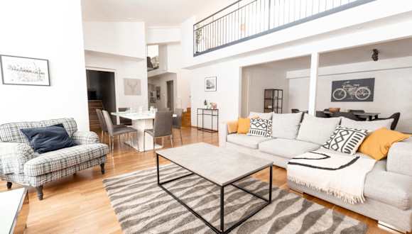 Die 2ndhomes Bright & Spacious 2-Story Apartment with Sauna ist eine moderne Ferienwohnung, die eine komfortable Unterkunft mit kostenlosem WLAN und einem Flachbild-TV bietet. Die Wohnung ist klimatisiert und erstreckt sich über zwei Etagen, was ein geräumiges Ambiente schafft.