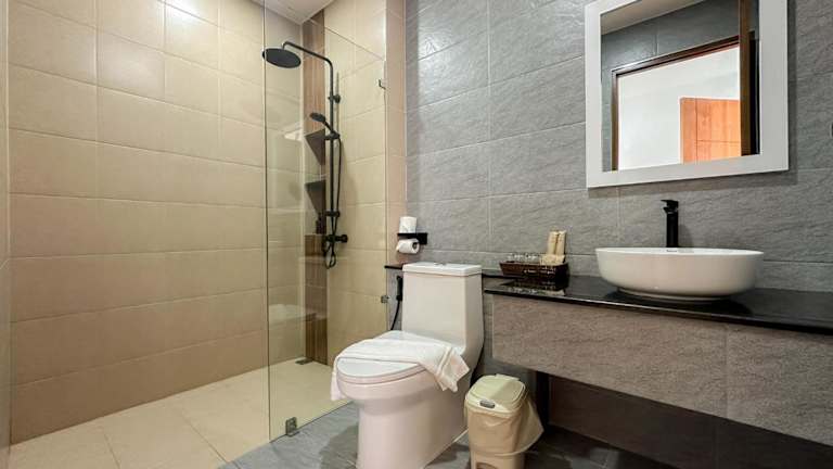 Die Zimmer sind mit einem eigenen Badezimmer ausgestattet, das ein Bidet und Bademäntel umfasst. Zusätzlich bieten die Zimmer kostenloses WLAN. Ausgewählte Zimmer verfügen über Meerblick. Die Ausstattung der Zimmer beinhaltet Klimaanlage und einen Kleiderschrank.