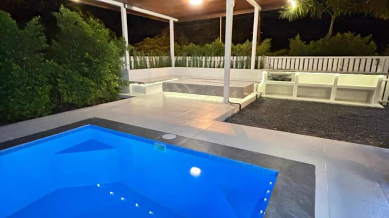 Die Unterkunft verfügt über 3 Schlafzimmer, ein Wohnzimmer und zwei Badezimmer. Zudem gibt es einen Außenpool und eine Terrasse.