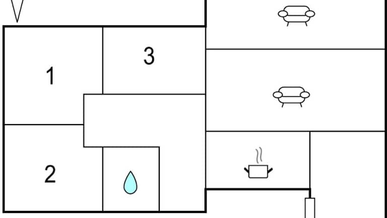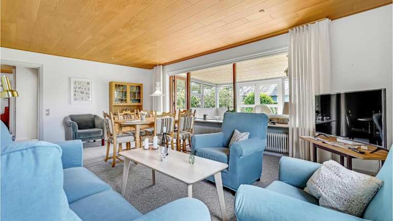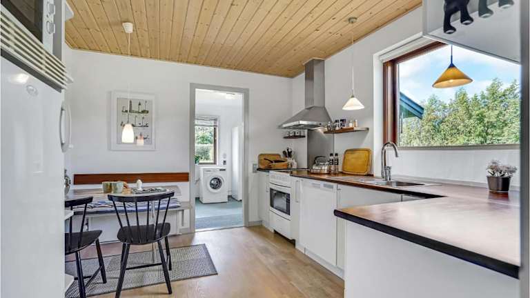 Das Ferienhaus verfügt über drei Schlafzimmer, ein Badezimmer mit Dusche sowie ein Wohnzimmer mit Kabelanschluss. Die Küche ist komplett ausgestattet mit einem Kühlschrank und einem Geschirrspüler.